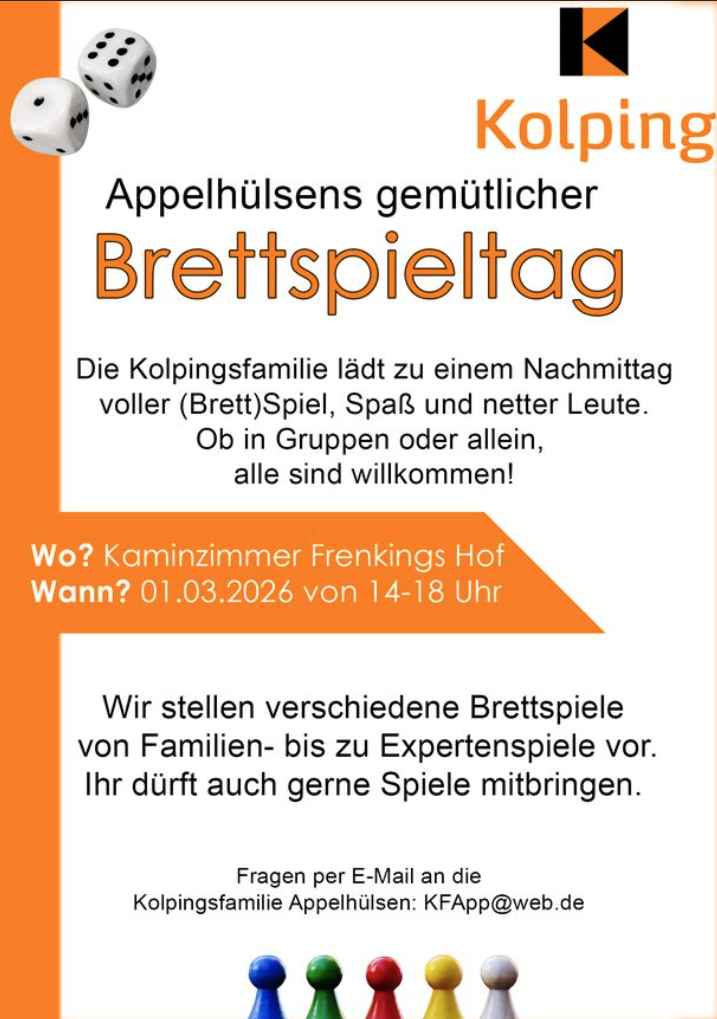 So. 01.03.26 14:00-18:00 Uhr Brettspieltreff Kaminraum Bürgerzentrum
