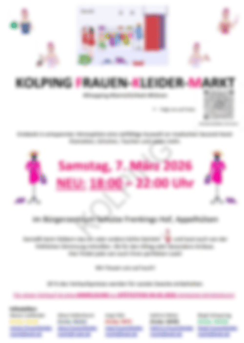 Sa.. 07.03.26 19:00 Uhr KFKM-Kolping Frauen Kleidermarkt Bürgerzentrum